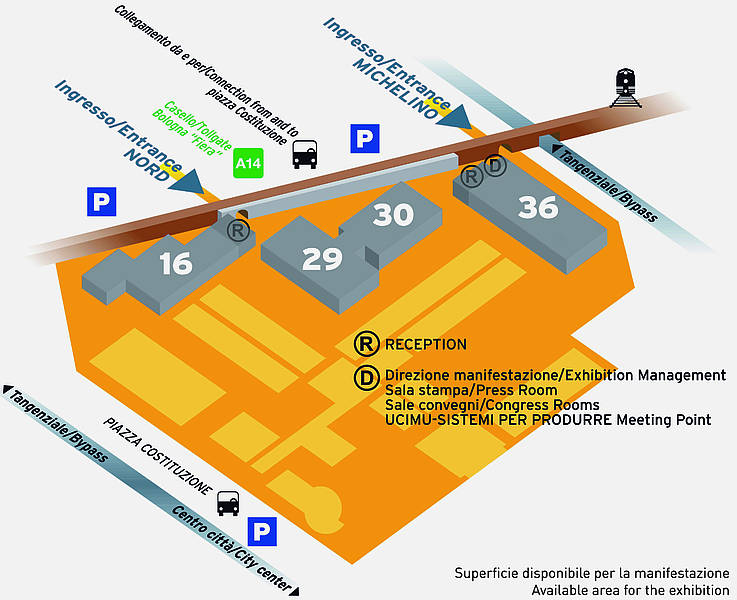 Il Quartiere Fieristico di Bologna è raggiungibile ogni giorno con le linee Tper a tariffa urbana 28 – 35 e 35/ – 38 – 39.