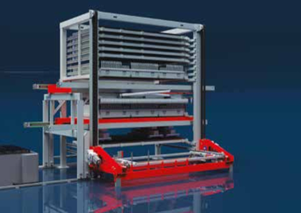 I sistemi di stoccaggio Astes4 a torre singola, doppia o multitorre possono stoccare pallet con materia prima o pezzi tagliati e perfettamente impilati ma anche vassoi con fogli tagliati o scheletro.